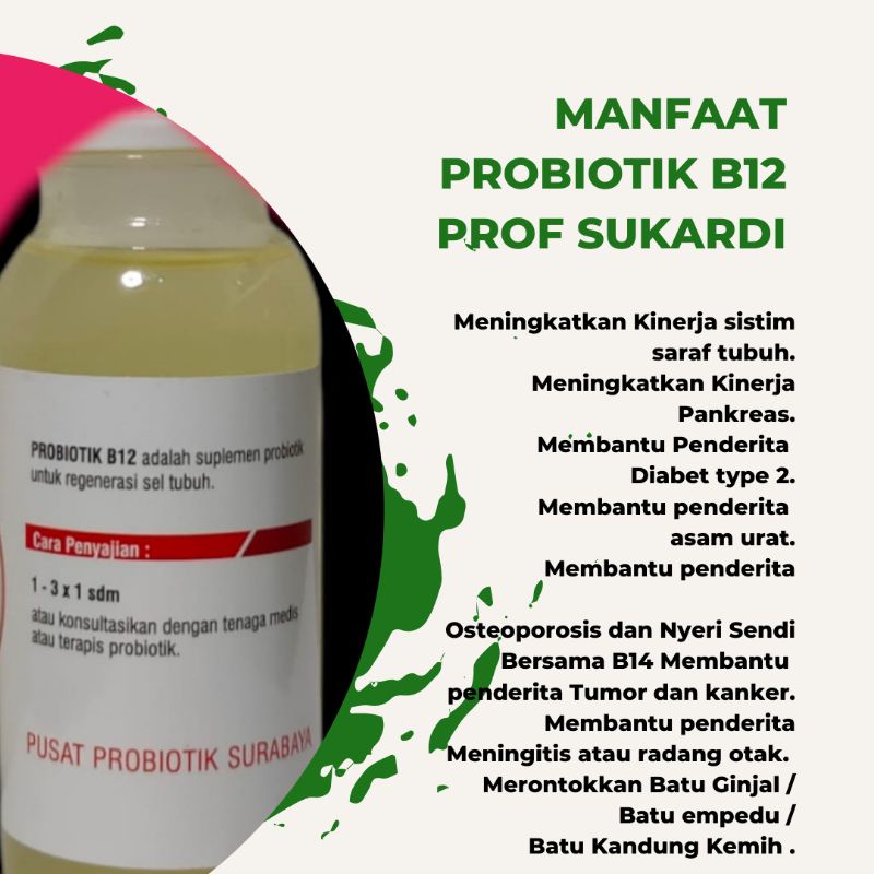 Untuk membantu menghancurkan kristal tersebut, dengan menggunakan bakteri probiotik yang ada pada larutan B12 ini. Larutan probiotik B12 ini karya dari Prof Sukardi yang sudah terbukti untuk menyehatkan salah satunya dengan menghancurkan kristal2 yang ada pada ginjal maupun empedu.